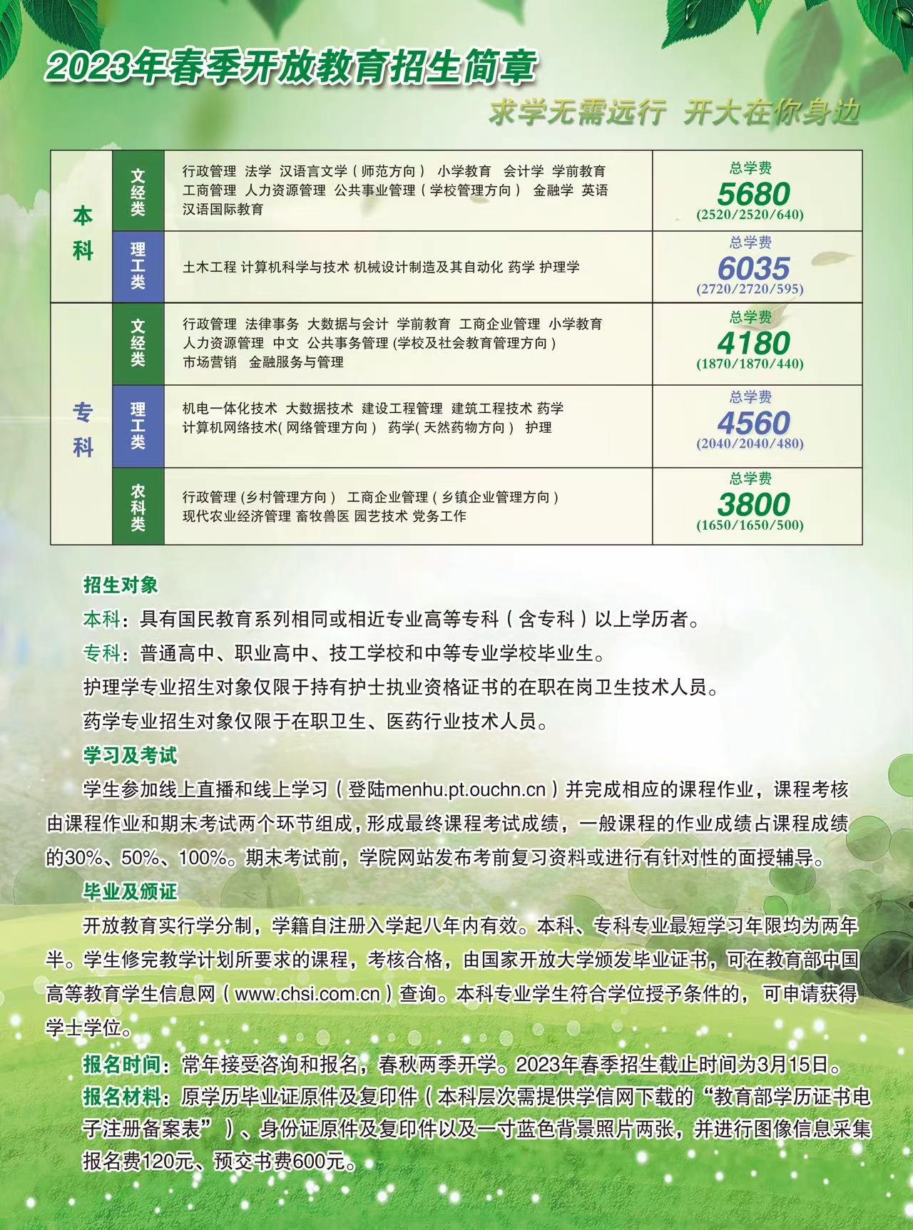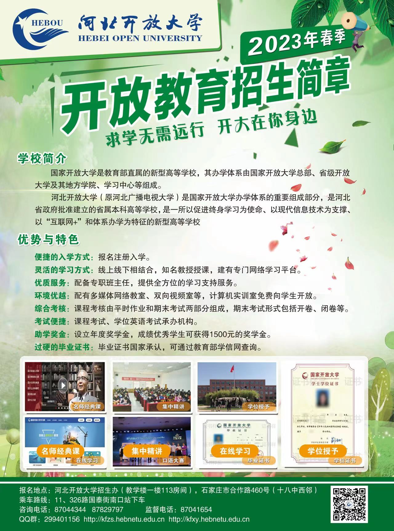2023年春季河北開放大學開放教育繼續在全省招生。
