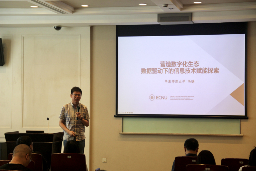 華東師范大學信息化治理辦公室平臺部業務主管馮騏分享了學校總體數字化建設思路為:以數據流和業務流驅動線上線下信息資源的整合聯動,通過數據融通、流程再造、結構重組打造信息技術賦能學校治理新生態。他介紹,華師大一直在不斷打造數字化生態,旨在讓數據交換更簡單、讓數據使用更便捷、讓數據感受更直觀、讓數據發揮更大價值。同時,學校堅持全民參與,讓更多師生參與到數字化建設的進程中來,感受到數字化工具的價值,其倡導的“自下而上、數據共享、互利互惠、合作共贏”的運營思維也與上海交通大學不謀而合。