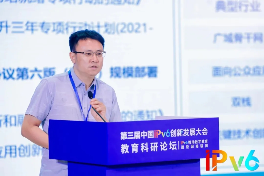 論壇上,任昌山作了《落實國家戰略 全面深化教育系統IPv6規模部署與應用》的特邀報告。他表示,教育部高度重視IPv6規模部署和應用工作,將IPv6等下一代互聯網技術與教育數字化戰略行動相結合,把推進IPv6規模部署和應用作為推進教育新型基礎設施建設的重要組成部分予以重點推進,將要全面深化教育系統IPv6規模部署和應用。