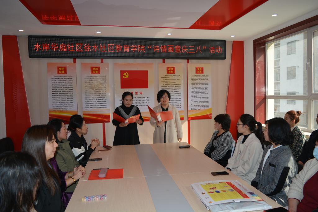 3月7日下午,徐水開放大學聯合水岸華庭社區,在水岸華庭社區黨員活動室舉辦了“詩情畫意慶三八”活動,徐水城區辦事處高永芳主任,徐水開放大學工作人員,水岸華庭社區服務人員及部分居民參加活動。