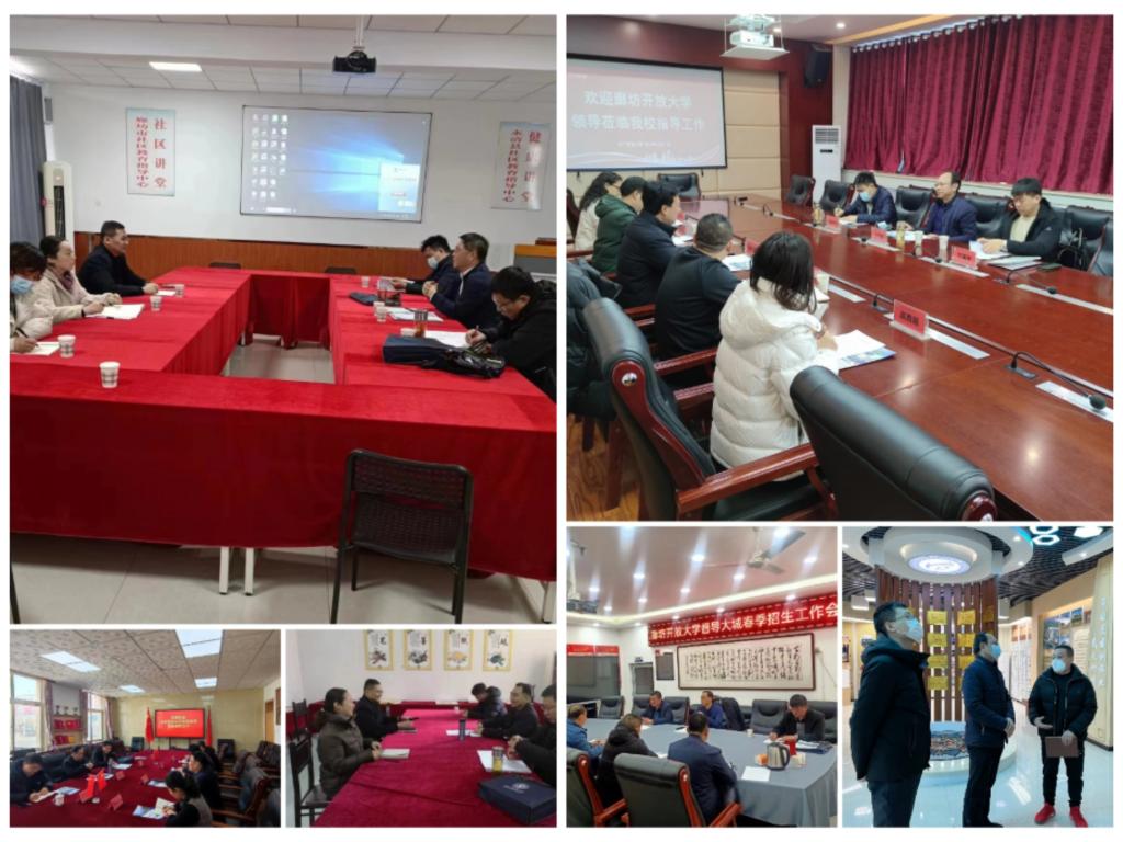 為強化系統建設,整體推進廊坊全市開放大學系統規范辦學,確保招生任務目標順利完成,2月15日-2月21日,廊坊開放大學校領導段再友、馬利國、姚東升、張建東、呂中戰分別赴三河、大廠、香河、固安、霸州、文安、永清、大城8所縣級開放大學及開發區直屬分校開展2023年春季招生調研督導工作。