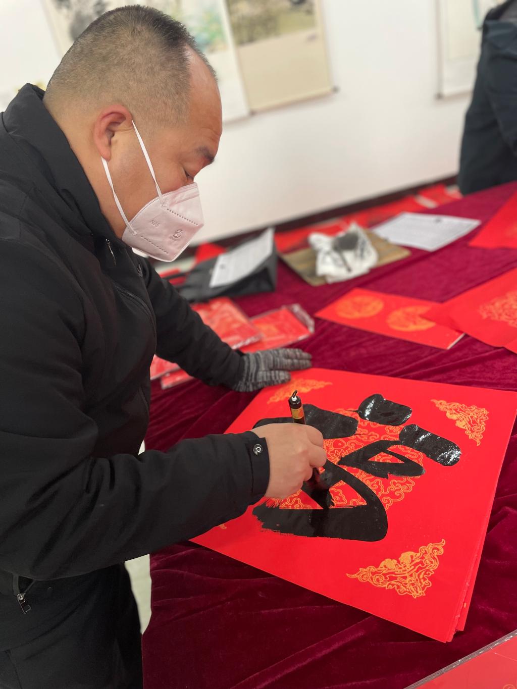 活動中,書法家們揮毫寫祝福,題字送吉祥,伏案寫下一句句新春祝福。一副副春聯、一張張“福”字在書法家們的筆下“新鮮出爐”,散發著墨香的春聯、“福”字喜氣洋洋,承載了對美好未來的殷殷祝愿,讓大家感受到了喜慶祥和的節日氛圍。