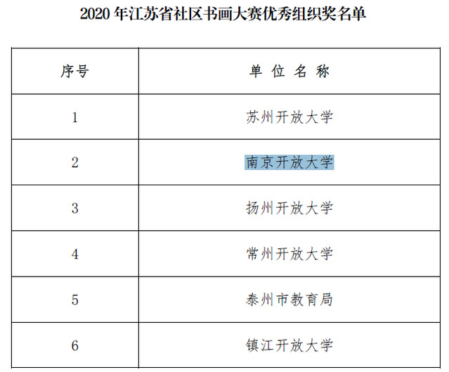 南京開放大學榮獲2020年江蘇省社區書畫大賽優秀組織獎