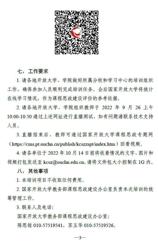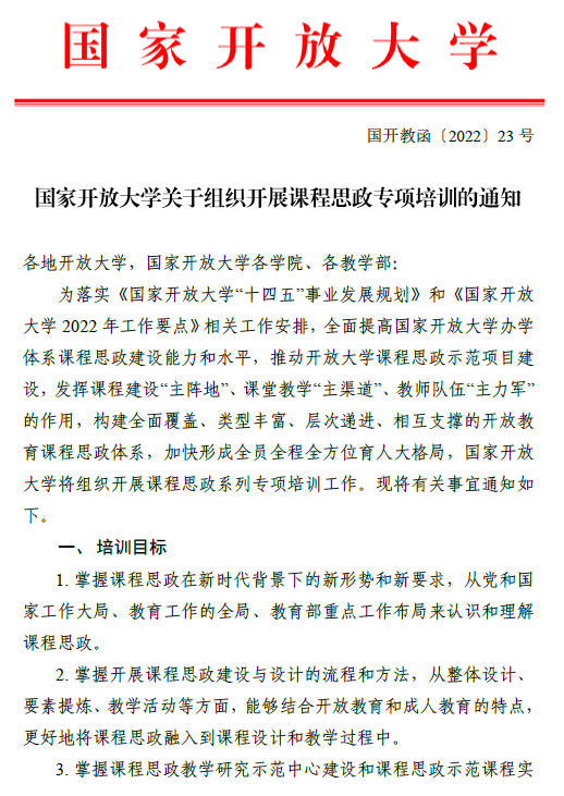 點擊原文下載附件【國家開放大學關于組織開展課程思政專項培訓的通知.pdf】