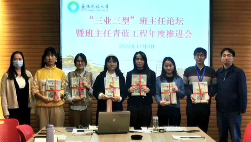 首先由學生工作處楊勇處長介紹了我校學生工作的育人目標、指導思想,如何在持續推進“文明我先行”教育促進行動,向與會青年教師闡述了“三業三型”德育(班主任)隊伍建設思路、班主任的成長通道。總結了學校開展班主任青藍工程一年來的系列工作,展示了第一輪青藍工程師徒的優秀做法,對2022-2023學年班主任青藍工程提出明確任務,同時還共同研討了如何結合實現“師徒共成長,育時代新人”目標的方法和途徑。接著財經管理學院黨總支羅鳴書記、機電與信息學院黨總支梁靜濤副書記向第二輪青藍工程的新教師贈送了書籍。