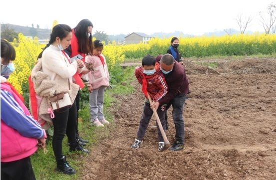 活動最后,水心壩村的種菜能手與椑木鎮鄉村振興志愿者服務隊、椑木鎮水晶小學校師生下地播種。勞動實踐活動讓參與者體驗到“盤中餐粒粒皆辛苦”的真正內涵。