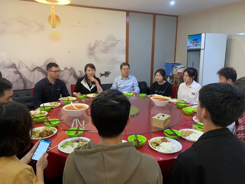 “你是哪里人啊?”“宿舍條件怎么樣?”“學習生活上還有什么困難?”“對學校還有什么意見建議?”校領導與同學們一起排隊打飯,在餐桌上親切交談,詳細詢問大家的學習、生活和個人發展規劃等情況。校領導的關心讓同學們備受鼓舞,大家也放下了拘謹,傾訴自己學習中的體會、生活上的建議,以及思想上的困惑。