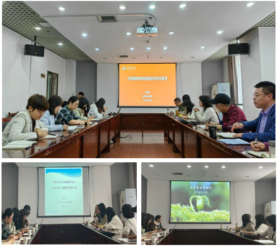 下午的專項調研會從中午1點研討至下午5點。環境生態學院院長干方群從學院開放教育概況、開放教學質量的管理及存在的問題和思考介紹了學院對教學質量管理工作的探索與實踐;副院長秦品珠從學院教學的舉措與成效、線下教學開展、畢業論文(設計)工作、專業建設指導委員會情況介紹了學院開放教育教學現狀;學院教師代表孟小華、陳大慶老師介紹了所負責課程的基本情況、課程教學內容、30%線下教學安排和線下教學的實施情況。