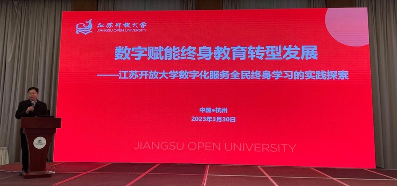 吳光林作了題為《數字賦能終身教育轉型發展——江蘇開放大學數字化服務全民終身學習的實踐探索》的主旨發言。吳光林從數字賦能終身教育的價值、數字賦能終身教育的江蘇實踐、數字賦能終身教育的江蘇實踐成效等三個方面做了交流發言,分享了江蘇開放大學數字賦能終身教育的經驗,以教育信息化引領教育現代化,搭建數字化學習平臺,打造面向各級各類學習需求的“教育超市”,推進“三類教育”資源迭代更新,初步形成數字化賦能全民終身學習的發展樣態與模式。吳光林的報告受到了與會者的廣泛關注和好評。