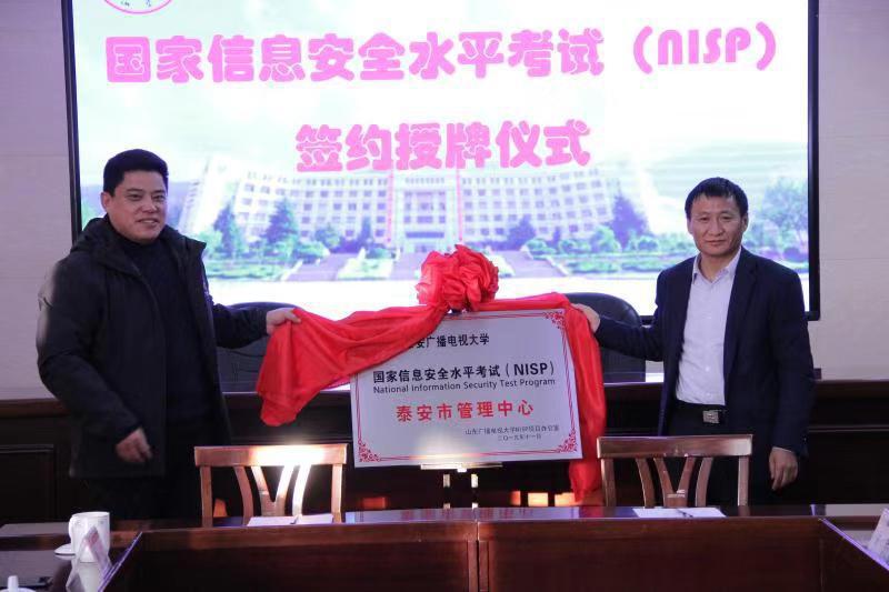 隨后,雙方共同為“國家信息安全水平考試泰安市管理中心”和“國家信息安全水平考試授權認證中心”揭牌,并簽署了合作協議。