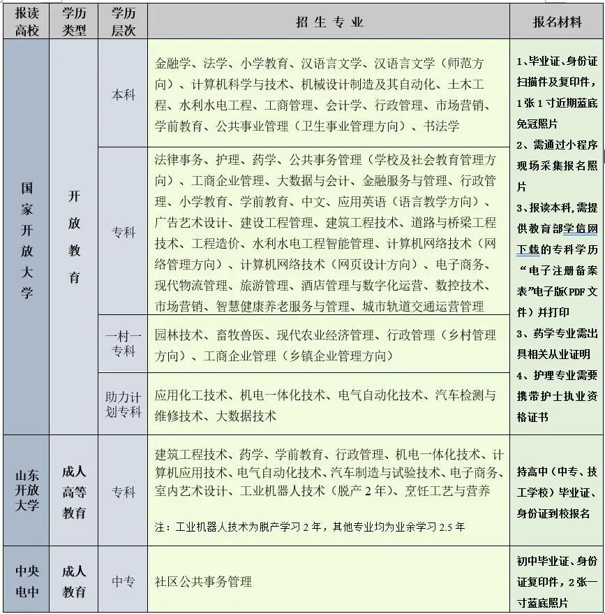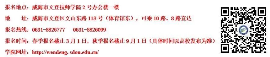 山東開放大學文登學院2023年春季成人教育招生簡章