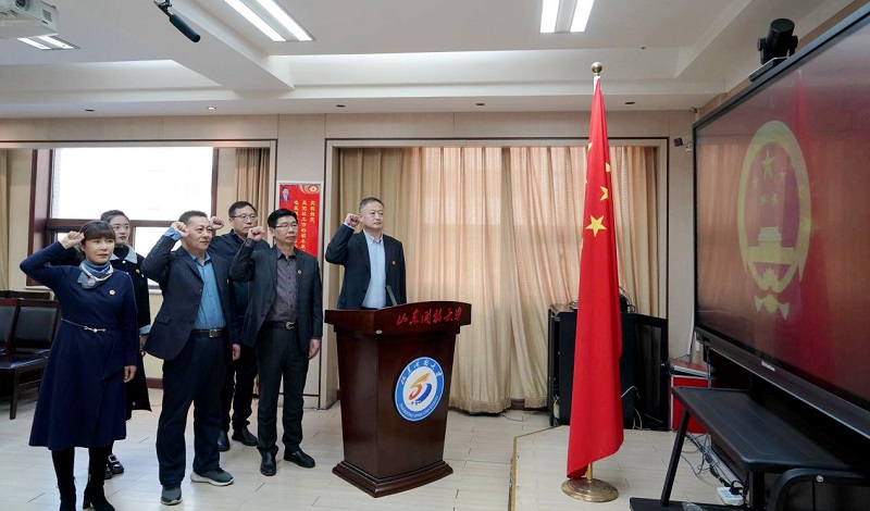 2月26日,學校舉行監察官憲法宣誓儀式,學校黨委委員、紀委書記、派駐監察專員、二級高級監察官譚征主持宣誓儀式并領誓。