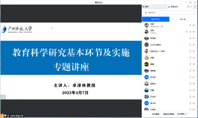 為進一步增強體系教職工科研意識,拓展科研思路,提高科研質量,幫助教職工取得高水平科研成果。4月7日,我校舉辦“教育科學研究基本環節及實施”專題講座。講座邀請了華南師范大學國際與比較教育研究所所長、博士生導師卓澤林教授主講。校屬各單位、各分校146人在線參會。