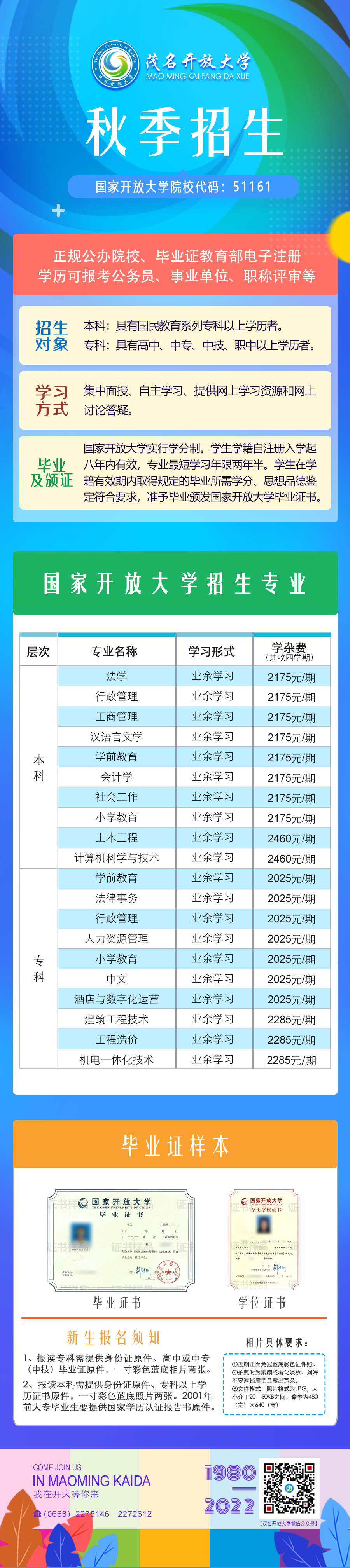 2022年秋季高州開放大學招生簡章