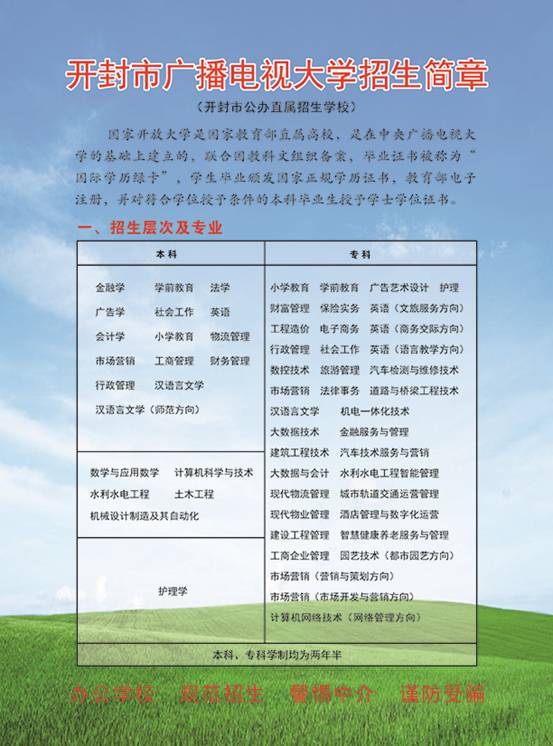 2022年春季開封龍亭開放大學招生簡章