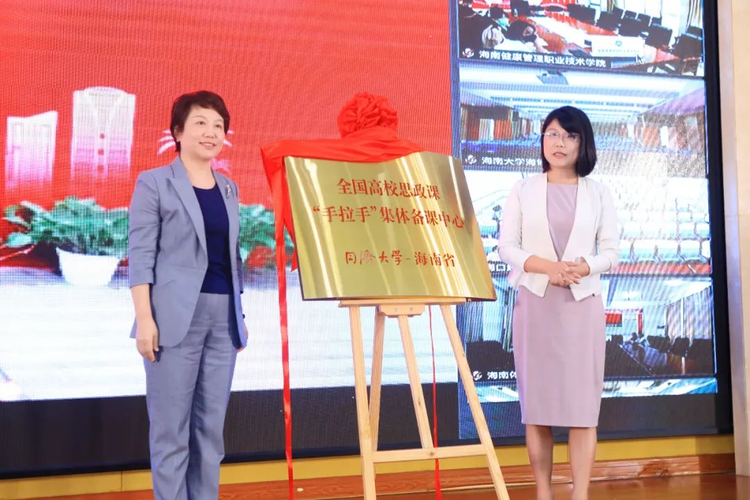 同濟大學黨委書記方守恩,海南省教育廳黨委書記、廳長曹獻坤出席并分別致辭。方守恩與同濟大學思政課教師代表、曹獻坤與海南大學思政課教師代表共同為這一集體備課中心揭牌。海南省教育廳黨委專職副書記呂治國主持。