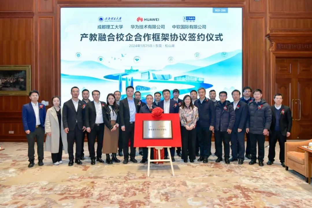 為深入貫徹落實國家創新驅動發展戰略,推進成都理工大學與國內名企在產教融合、科教融匯、人才培養等方面的強強聯合、持續發展。近日,成都理工大學與華為技術有限公司、北京中軟國際信息技術有限公司產教融合校企合作協議簽約儀式于東莞松山湖舉行。