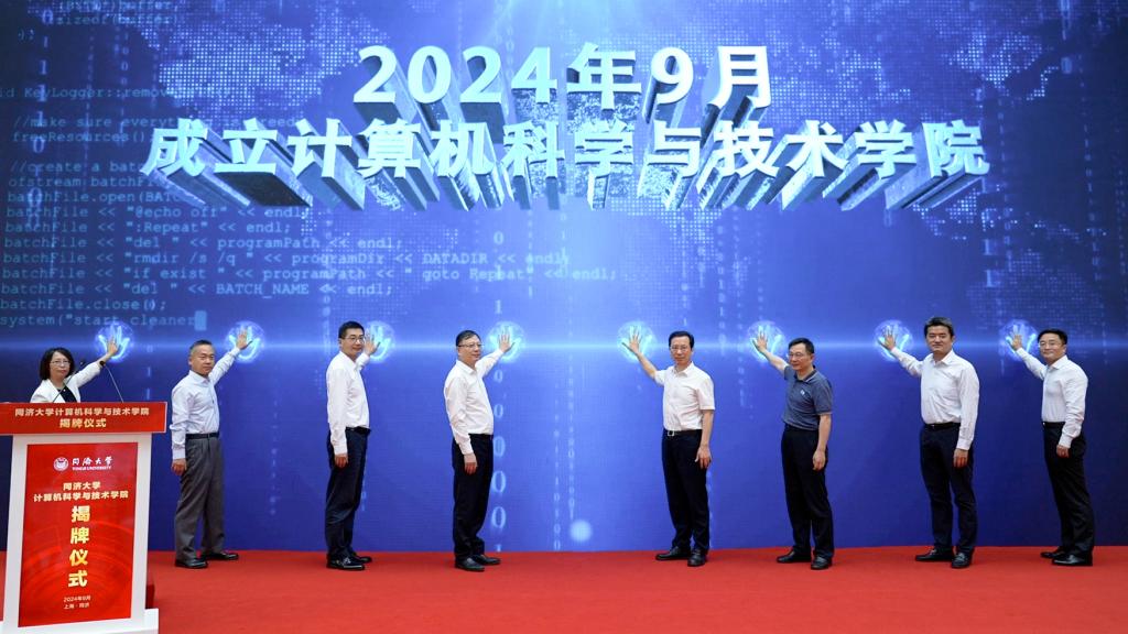 同濟大學黨委書記方守恩,校長、中國工程院院士鄭慶華,上海市教衛工作黨委副書記、上海市教育委員會副主任顧紅亮,上海市科學技術委員會副局長級干部謝文瀾,上海市經濟和信息化委員會二級巡視員劉益平,上海市嘉定區副區長魏曉棟,以及同濟大學計算機科學與技術學院黨委書記熊嵐、院長申恒濤共同揭牌。