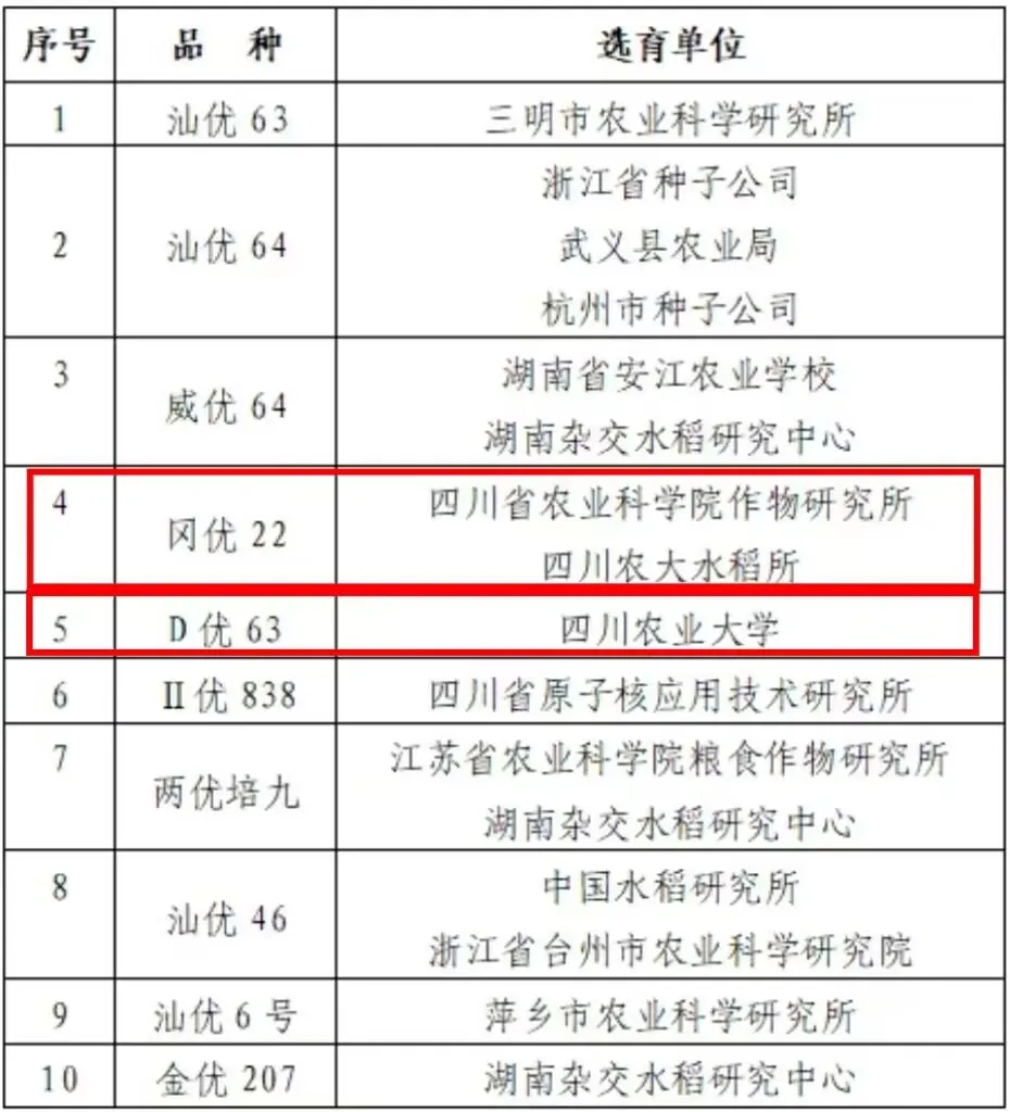 四川農業大學兩個品種入選十大雜交水稻榮譽品種!