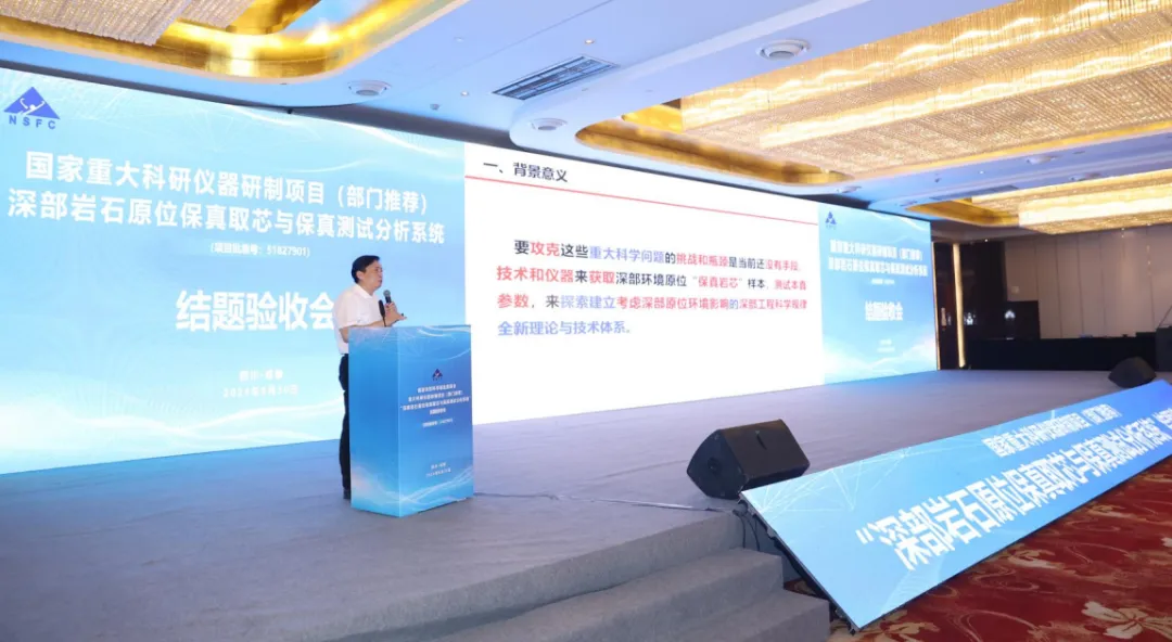 近日,由四川大學謝和平院士團隊承擔的國家重大科研儀器研制項目(部門推薦)“深部巖石原位保真取芯與保真測試分析系統”(批準號:51827901)結題驗收會在成都召開。國家自然科學基金委員會工程與材料科學部常務副主任王岐東、副主任苗鴻雁、賴一楠,教育部科技司相關人員,項目驗收專家組,項目監理組,四川大學校長汪勁松,副校長劉超,科研院、水利水電學院相關負責人,項目負責人謝和平院士及項目組成員等100余人參加了驗收會。驗收會由苗鴻雁主持。