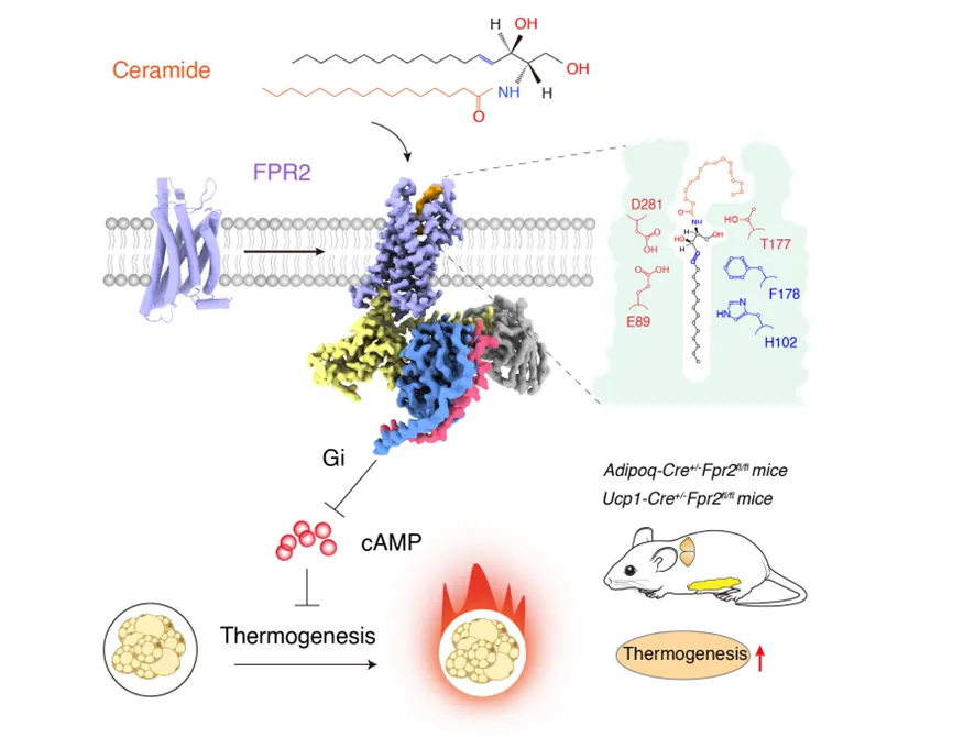 該研究首次發現了脂肪細胞中的神經酰胺膜受體FPR2,系統闡明了神經酰胺-FPR2信號軸調控脂肪產熱的作用機制,揭示了FPR2特異性識別神經酰胺的分子機制。這項突破性工作不僅為深入理解神經酰胺的生物學功能提供了全新視角,更為代謝性疾病的靶向治療開辟了新的研究方向。