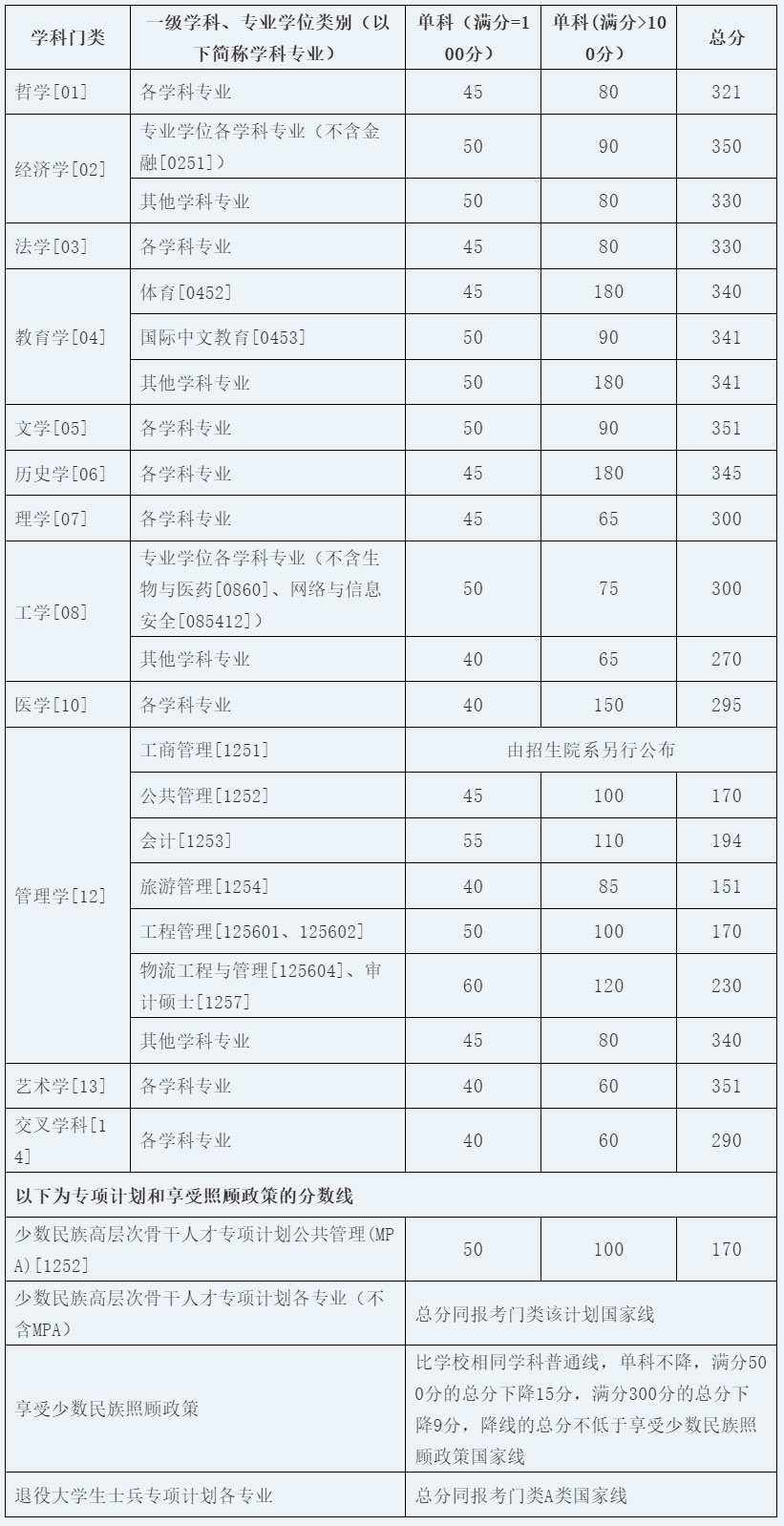 1.各招生院系在單科和總分都不低于上述學校相應學科復試基本分數線的原則下,確定本單位各學科專業的復試分數線。