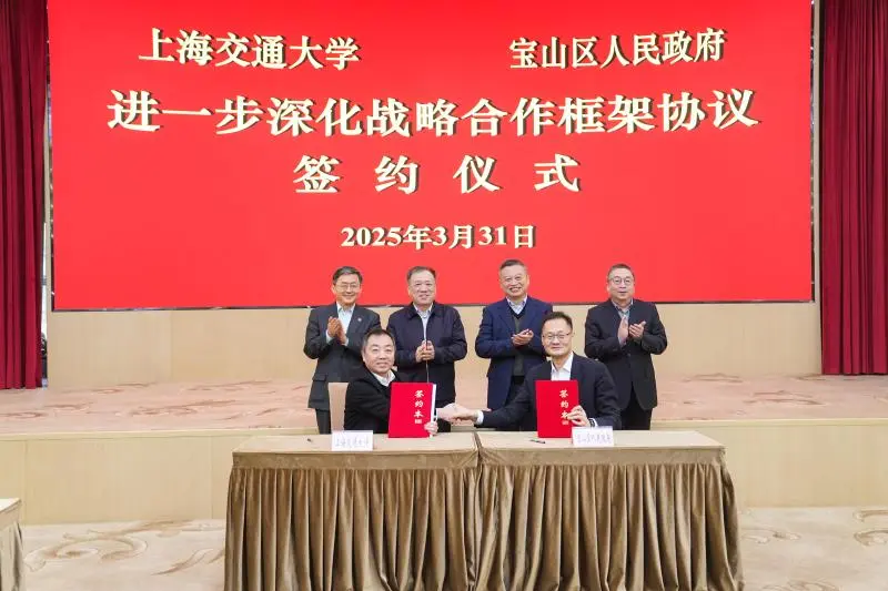 會上,雙方簽署《上海市寶山區人民政府 上海交通大學進一步深化戰略合作框架協議》。雙方將進一步深化戰略合作,圍繞黨建引領、深化產學研用融合、生物醫藥、醫療衛生、基礎教育、城市設計與城市更新、文化旅游、農業農村、干部人才交流等方面開展合作,共同打造人才鏈、創新鏈、產業鏈、資金鏈深度融合的區校合作新范式,為寶山區建設上海科創中心主陣地和上海交大打造中國特色世界一流大學等目標愿景提供強大動力支撐。
