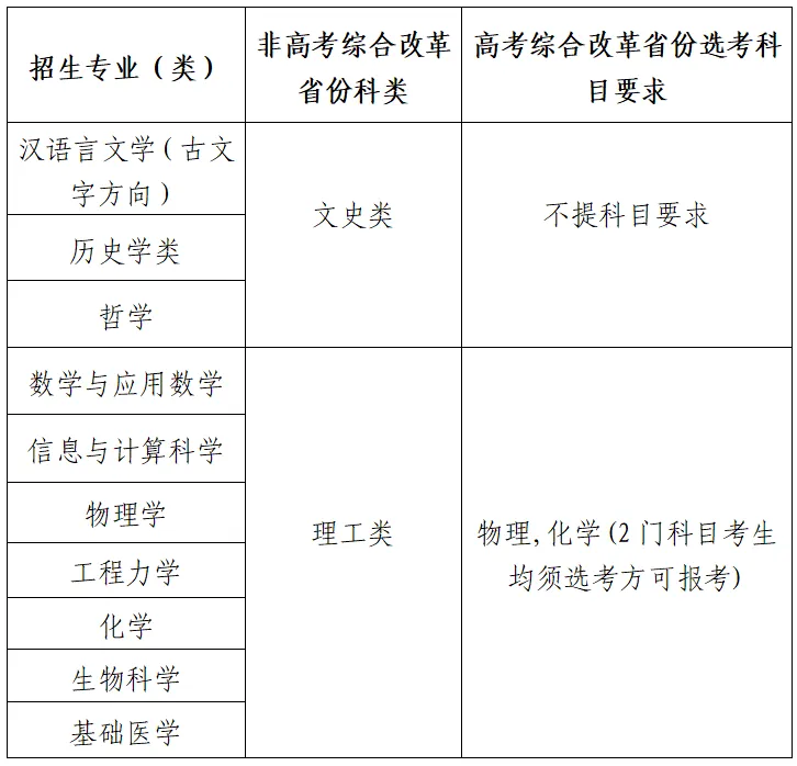 為全面貫徹全國教育大會精神,深入落實《國務院關于深化考試招生制度改革的實施意見》(國發〔2014〕35號)、教育部《關于在部分高校開展基礎學科招生改革試點工作的意見》(教學〔2020〕1號)等文件精神,服務國家重大戰略需求,加強基礎學科拔尖創新人才選拔培養,四川大學2025年繼續開展基礎學科招生改革試點(以下簡稱強基計劃),選拔一批有志向、有興趣、有天賦的青年學生進行專門培養,為國家基礎學科和重大戰略領域輸送后備人才。