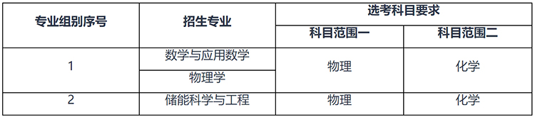 我校強基計劃招生專業為數學與應用數學、物理學、儲能科學與工程,設置為兩個專業組別。