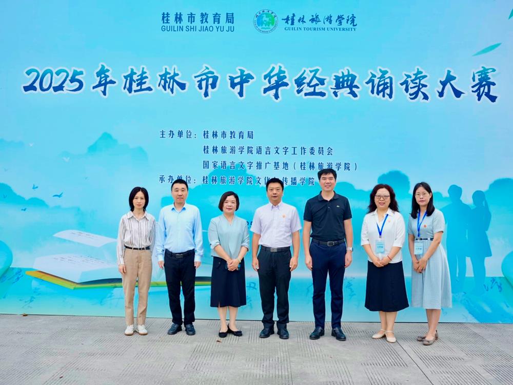 近日,2025年桂林市中華經典誦讀大賽決賽在桂林旅游學院成功舉辦。此次大賽由桂林市教育局和國家語言文字推廣基地(桂林旅游學院)聯合主辦,來自桂林市中小學的師生、鄉村基層干部及社會各界語言文化愛好者共200余名選手參加。入圍決賽的選手們使用標準普通話飽含深情地誦讀中華經典文學作品,以及關于中國共產黨的光輝歷程、鑄牢中華民族共同體意識、鄉村振興等感人至深的現當代文學作品,旨在以經典誦讀的形式推動國家通用語言文字推廣普及、傳承弘揚中華優秀傳統文化、促進城鄉文明協調發展,共同助力廣西“五個家園”建設。