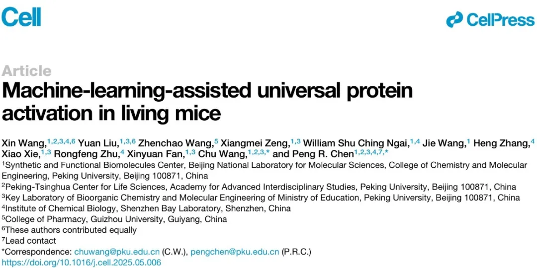 5月27日,北京大學化學與分子工程學院、前沿交叉學科研究院生命科學聯合中心陳鵬教授課題組和王初教授課題組的合作成果以“Machine-learning-assisted universal protein activation in living mice”為題在《細胞》(Cell)雜志在線發表。