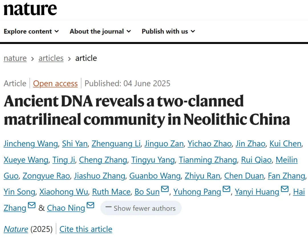 幾位北大老師講到的是他們與山東省文物考古研究院的老師們合作發表在國際學術期刊《自然》上的最新成果。成果首次以分子遺傳學證據,山東廣饒傅家遺址存在距今4750年以前由兩個母系氏族構成的社會形態。
