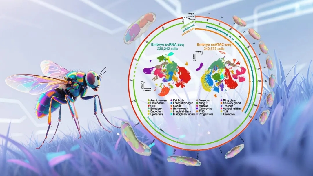 南方科技大學醫學院藥理學系副教授胡宇慧科研團隊與華大生命科學研究院合作構建果蠅三維時空單細胞多組學發育圖譜。相關研究成果以“A Drosophila single-cell 3D spatiotemporal multi-omics atlas unveils panoramic key regulators of cell type differentiation”為題在Cell期刊上發表。
