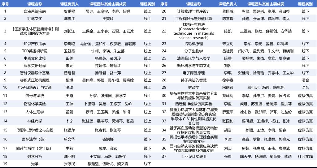 近日,教育部公布了第三批國家級一流本科課程認定結果名單,西安交通大學共有37門課程入選,包括線上課程15門、線下課程12門、線上線下混合式課程2門、虛擬仿真課程7門、社會實踐課程1門。