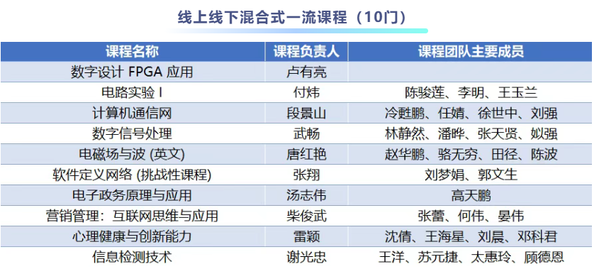 此次電子科技大學入選的國家級一流本科課程,包括線上一流課程4門、虛擬仿真實驗教學一流課程4門、線上線下混合式一流課程10門、線下一流課程5門、社會實踐一流課程1門。