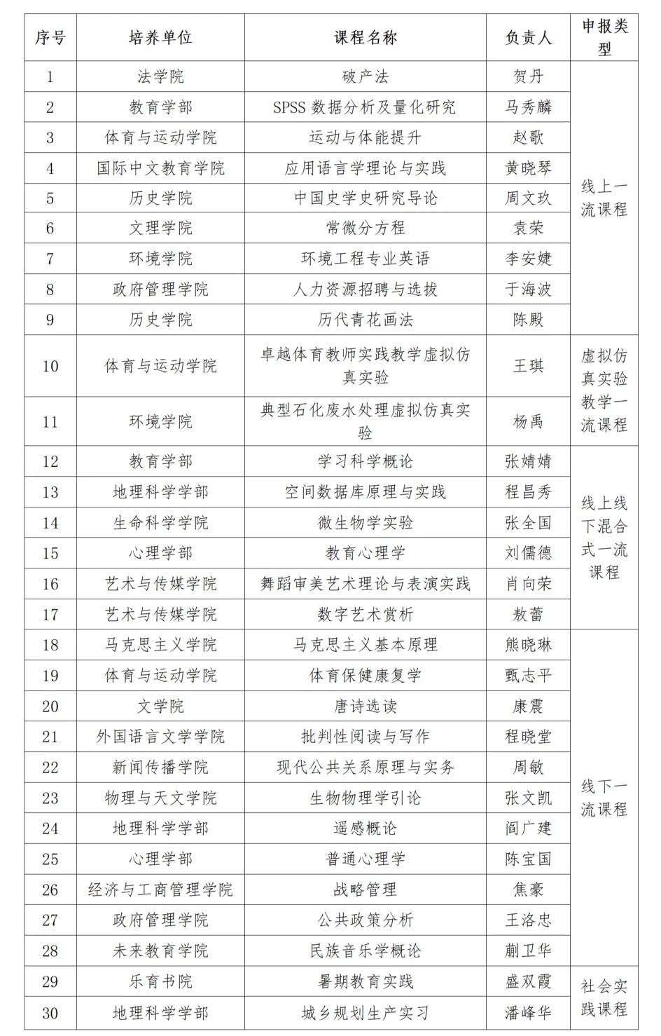 北京師范大學30門課程入選第三批國家級一流本科課程!