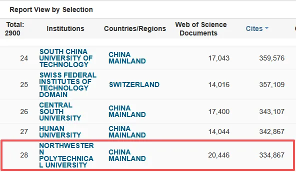 西北工業大學工程學進入ESI全球前萬分之一!