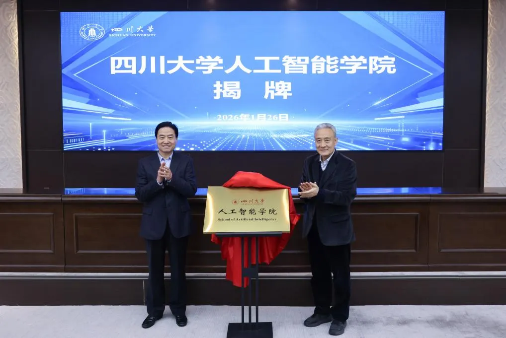 1月26日,四川大學人工智能學院揭牌儀式在望江校區明德樓舉行。校黨委書記甘霖、校長汪勁松等全體校領導,各單位主要負責人,師生代表等參加儀式。常務副校長褚良銀主持。校黨委副書記黃園宣讀《四川大學關于成立人工智能學院的決定》。