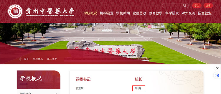 1月2日,貴州中醫藥大學“現任領導”一欄更新顯示,周英已任該校校長。