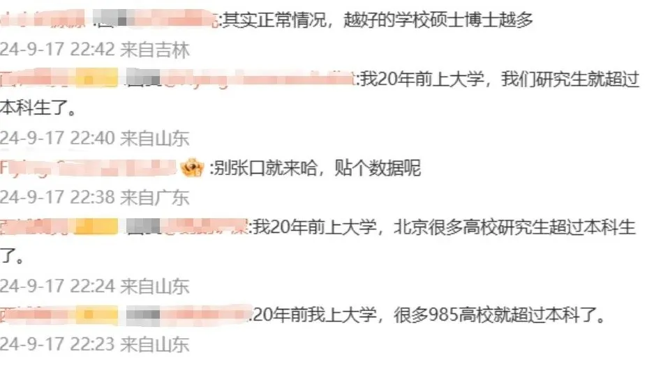 更多人則表示,研究生規模超過本科生,根本不是什么稀奇的事,尤其是在985等著名高校。