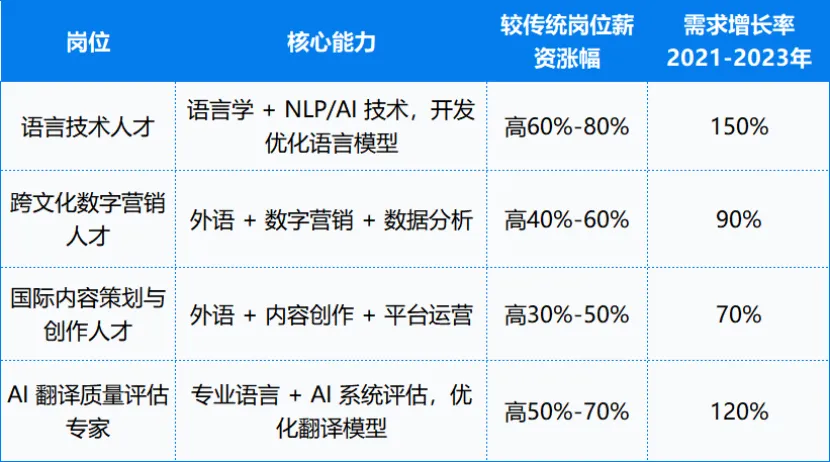 語言技術專家:掌握AI翻譯工具的使用與優化,負責AI翻譯質量控制,成為AI的指揮者。