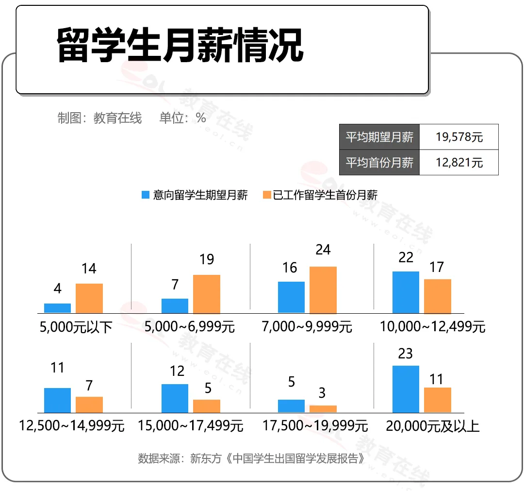 近日,新東方發布的《中國學生出國留學發展報告》顯示,2026年,留學生平均期望月薪近兩萬元,而首份工作實際平均薪資為1.3萬元,預期與現實存在明顯差距。