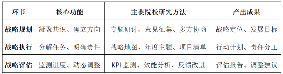 在“共同創造”模式中,戰略引領機制是實現院校研究從被動響應向主動引領轉變的核心環節。該機制通過IR的專業介入與多元主體的協同參與,構建了從戰略生成、傳導到評估的完整閉環,形成了“證據驅動、全員參與、持續優化”的戰略治理新范式。
