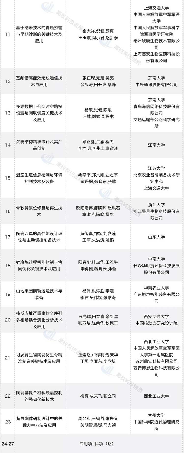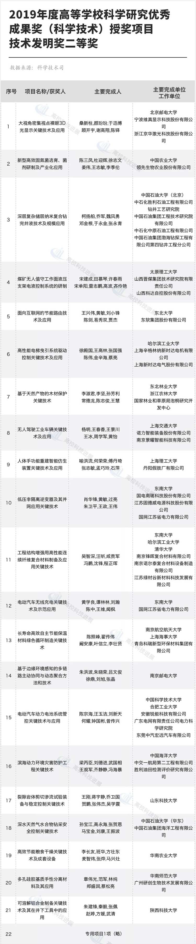 2019年度技術發明獎授獎項目共計49項,其中,一等獎授獎項目27項、二等獎授獎項目22項。
