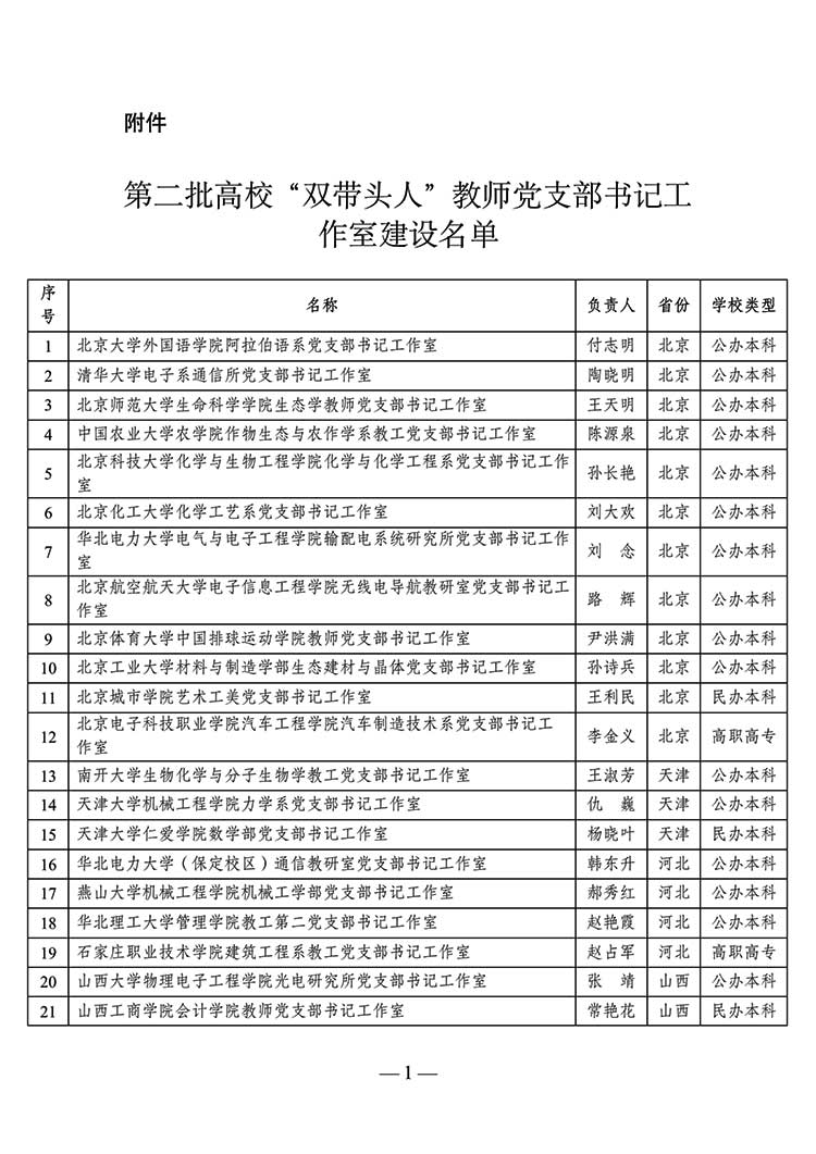 教育部公示第二批高校“雙帶頭人”教師黨支部書記工作室建設名單