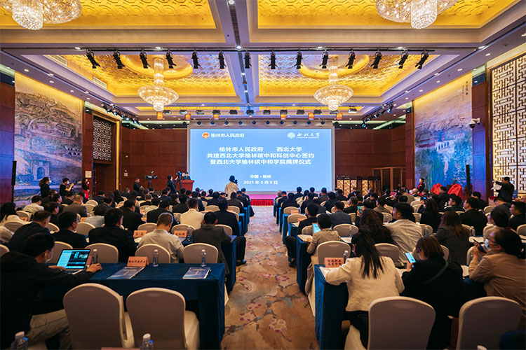 5月9日上午,西北大學與榆林市人民政府共建西北大學榆林碳中和科創中心簽約儀式暨西北大學榆林碳中和學院揭牌儀式在榆林舉行。
