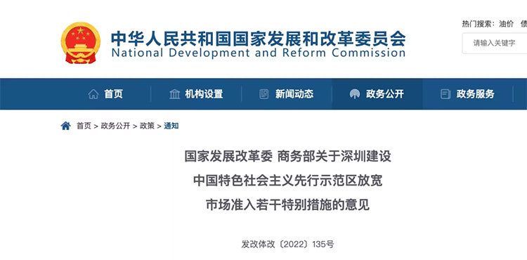 1月26日,國家發改委、商務部發布《關于深圳建設中國特色社會主義先行示范區放寬市場準入若干特別措施的意見》。