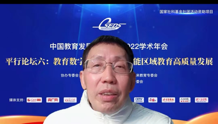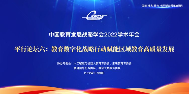中國教育發展戰略學會2022學術年會主題為“教育數字化戰略行動賦能區域教育高質量發展”的平行論壇于12月18日上午在“云端”召開,該論壇由中國教育發展戰略學會所屬的“人工智能與機器人教育”、“未來教育”、“教育信息化”和“教育大數據”四個專業委員會共同協辦。