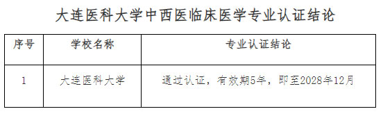 關于大連醫科大學中西醫臨床醫學專業認證結論的公示