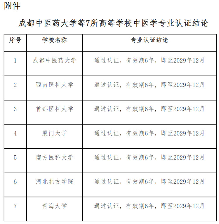 關于成都中醫藥大學等7所高等學校中醫學專業認證結論的公示